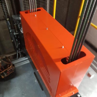 We install custom designed, close fitting sheet metal guards to prevent access to moving lift machinery. Following one of our engineers site survey, the guards will be meticulously designed and then fabricated to ensure they meet regulations, but still have the GRD edge. They will generally be manufactured out of 2mm mild steel with wire mesh incorporated for where visibility is required, then powder coated to ensure a good robust finish.