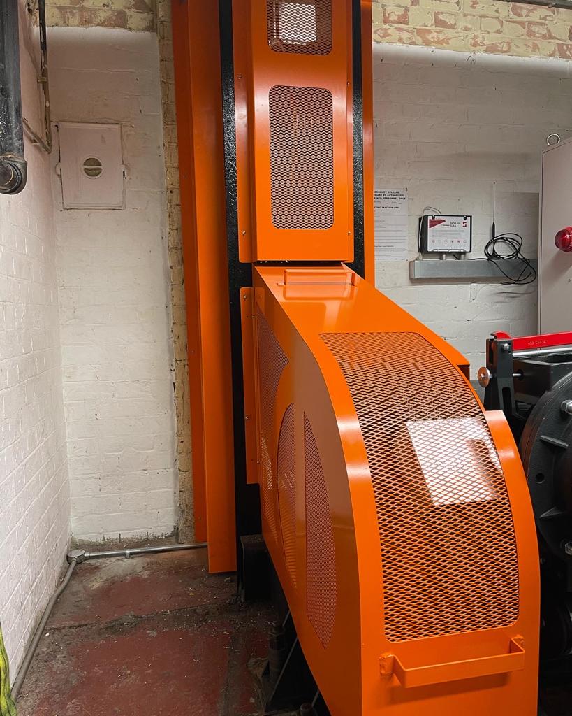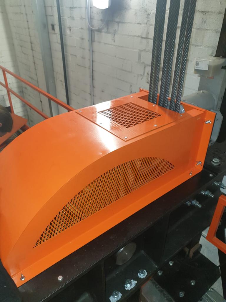 We install custom designed, close fitting sheet metal guards to prevent access to moving lift machinery. Following one of our engineers site survey, the guards will be meticulously designed and then fabricated to ensure they meet regulations, but still have the GRD edge. They will generally be manufactured out of 2mm mild steel with wire mesh incorporated for where visibility is required, then powder coated to ensure a good robust finish.